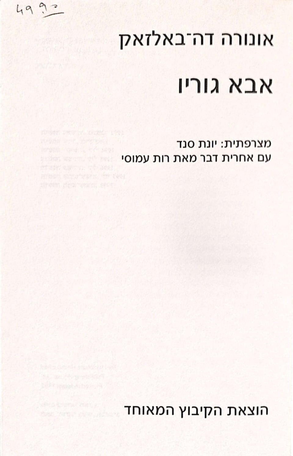 אבא גוריו / אונורה דה באלזאק (תרגום של יונת סנד)