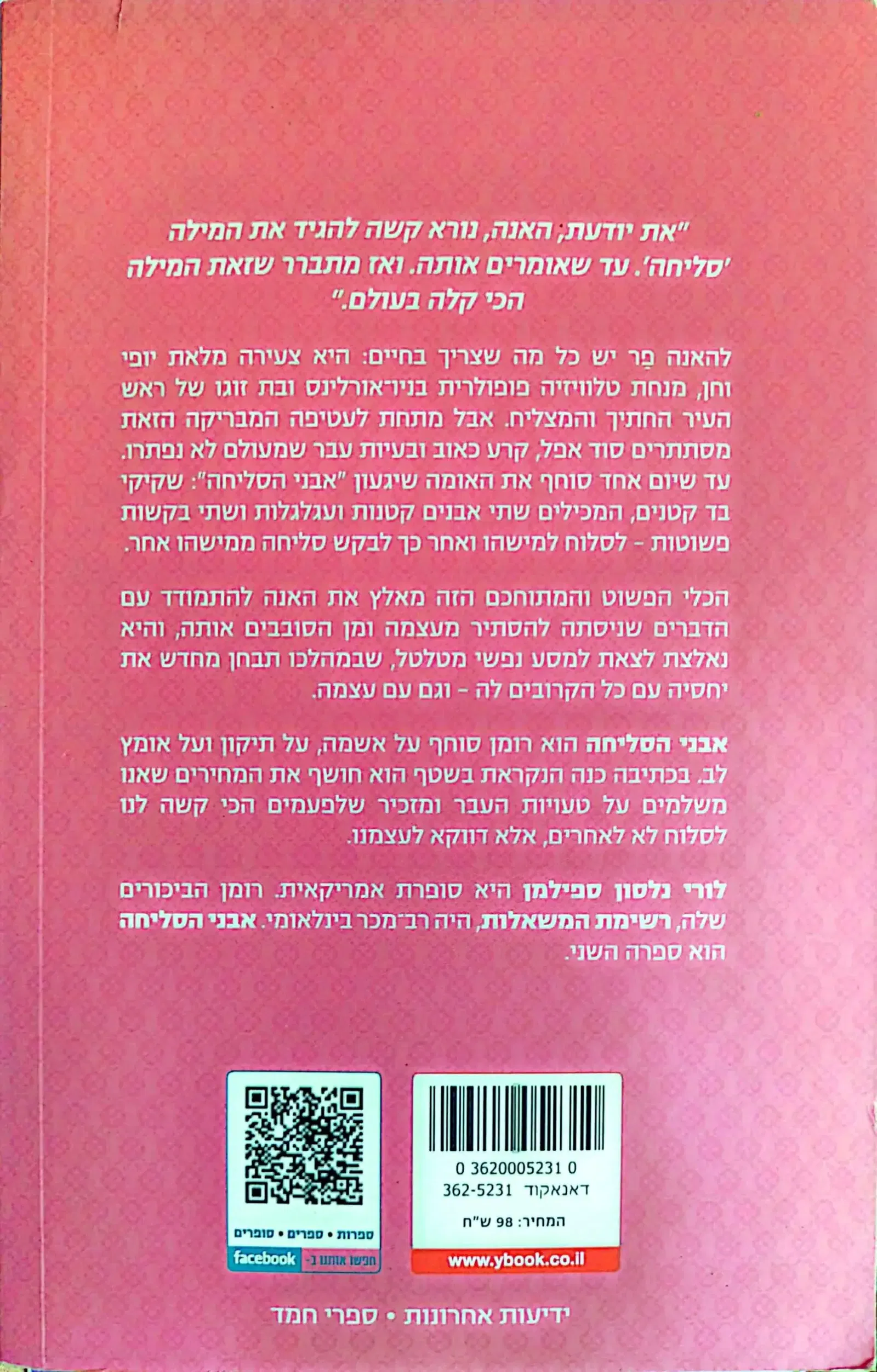 תקציר העלילה: הסיפור מתמקד בהאנה פר, מנחת טלוויזיה פופולרית מניו-אורלינס ובת זוגו של ראש העיר המצליח. למרות חייה הנראים מושלמים, האנה נושאת עמה סוד אפל מהעבר. כאשר תופעה חברתית חדשה בשם "אבני הסליחה" סוחפת את האומה—שקיקי בד קטנים המכילים שתי אבנים, המעודדים אנשים לסלוח ולבקש סליחה—האנה נאלצת להתמודד עם עברה ויוצאת למסע נפשי לבחון מחדש את יחסיה עם הקרובים לה ועם עצמה.