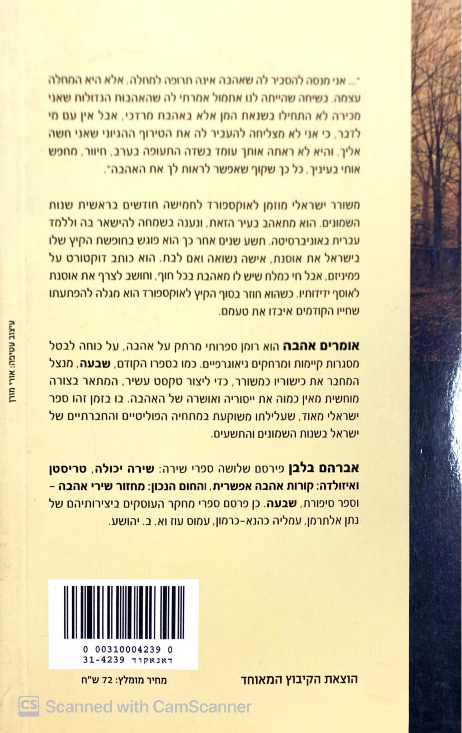 אומרים אהבה מאת אברהם בלבן הוא רומן ישראלי רגשי ונוגע, העוסק באהבה, זהות וגעגוע. גיבור הסיפור, משורר ישראלי שנוסע לשהות באוקספורד, מוצא את עצמו נשאב לרומן סוער עם אישה נשואה במהלך ביקורו בארץ. במקביל, הוא מתמודד עם שאלות של נאמנות, חופש אישי ומשמעות האהבה בשלב מאוחר של החיים. בלבן מצייר דיוקן אנושי עדין ומורכב של גבר הנע בין תשוקה לבין אחריות, ובין עבר שלא מרפה לעתיד שאינו ברור.