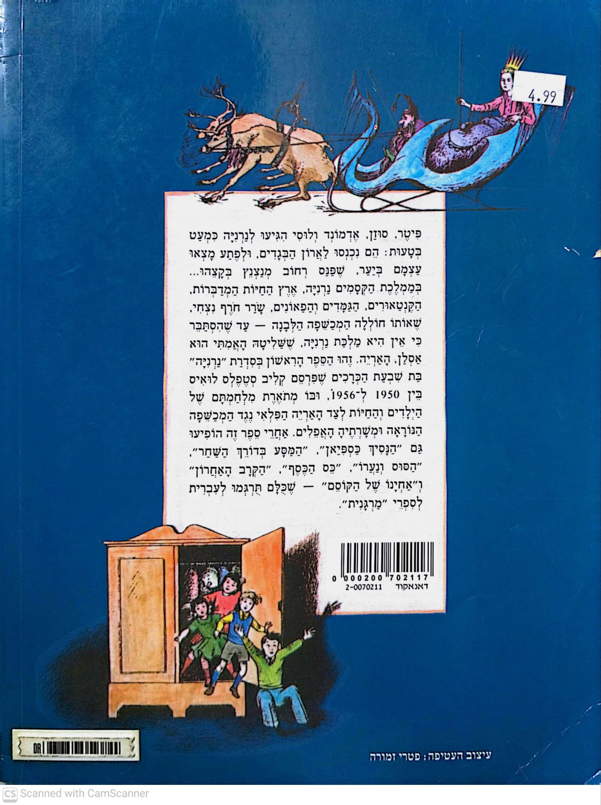 האריה, המכשפה וארון הבגדים הוא הספר הראשון בסדרת הפנטזיה הקלאסית "דברי ימי נרניה" מאת קלייב סטייפלס לואיס. ארבעה ילדים מגלים ארון בגדים מסתורי המוביל אותם אל ממלכת נרניה, הנשלטת בידי המכשפה הלבנה שהטילה כישוף של חורף נצחי. בממלכה הם פוגשים את האריה אסלן ונקלעים למאבק בין כוחות הטוב והרע, מסע שבו מתגלים אומץ, נאמנות ותקווה. זהו סיפור פנטזיה קסום שמעניק חוויית קריאה מרתקת לילדים, נוער ומבוגרים כאחד.