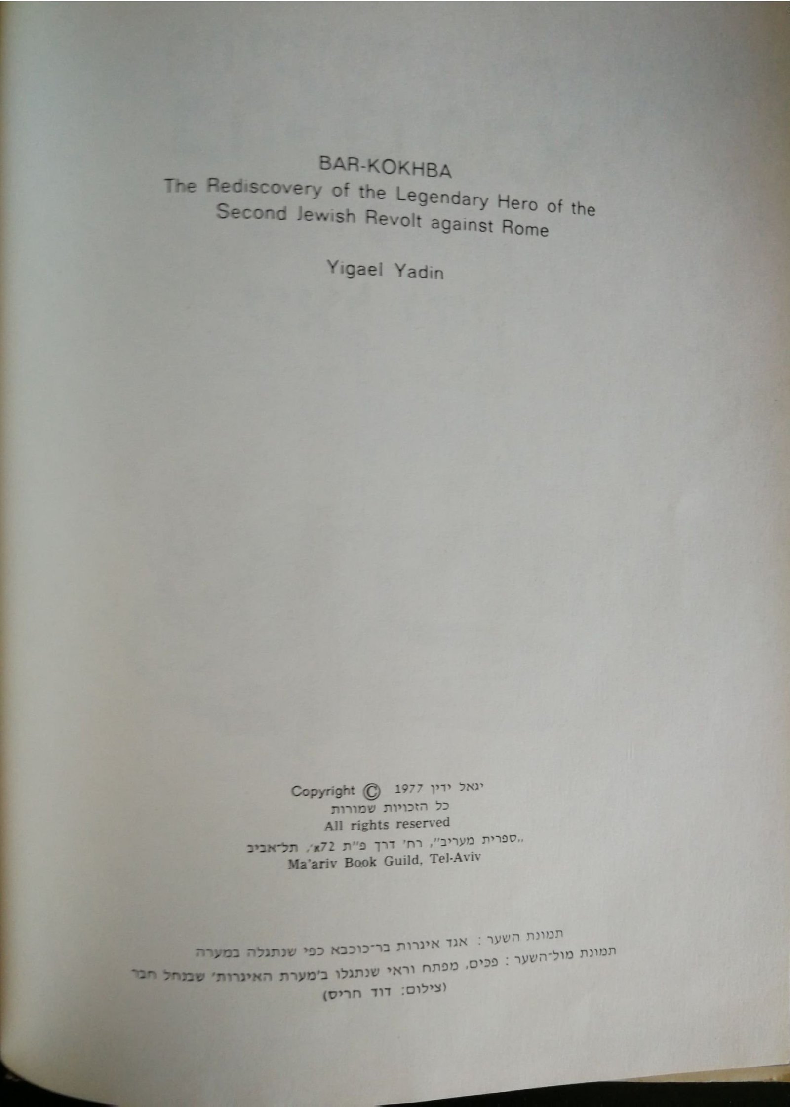 הספר "החיפושים אחר בר־כוכבא" מאת יגאל ידין מתעד את אחת מההרפתקאות הארכיאולוגיות הגדולות והמרתקות בתולדות מדינת ישראל. ידין, שעמד בראש משלחת החפירות במערות מדבר יהודה בשנות השישים, מספר על גילוי המכתבים, כלי הבית, הנשקים והמסמכים ששרדו מאז מרד בר־כוכבא, ומאפשר הצצה נדירה אל חייו של המנהיג ואל עולמם של לוחמיו. הספר משלב תיעוד מדעי עם כתיבה סוחפת, ומחייה את סיפורו של אחד הפרקים הדרמטיים והנחרצים ביותר בהיסטוריה היהודית.