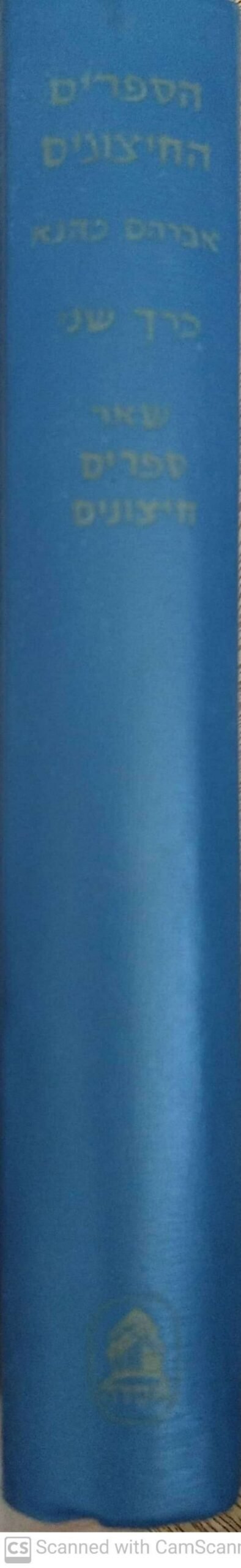 כרך שני, חלק ב' של "הספרים החיצונים" בעריכת אברהם כהנא, כולל תרגומים, מבואות והערות לחיבורים שלא נכללו בקאנון המקראי אך נחשבים לחלק חשוב מן הספרות היהודית הקדומה. בין החיבורים הכלולים: ספר טוביה, ספר יהודית, חזיונות הסיבילות ודברי שמעון בן־סירא. המהדורה מציגה טקסטים מתורגמים בליווי הסברים היסטוריים ולשוניים, המעמיקים את ההיכרות עם הכתבים האפוקריפיים ומקומם במסורת.