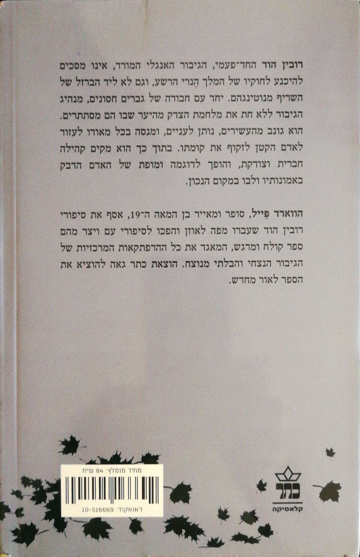הספר "הרפתקאות רובין הוד" מאת הווארד פייל מביא את סיפורו הקלאסי של הגיבור העממי שחי ביער שרווד ונאבק למען הצדק, החירות והעניים כנגד השריף העריץ של נוטינגהם. דרך שילוב של מתח, הומור ונאמנות לרוח האגדות האנגליות, פייל מציג דמות מורכבת של פורע חוק אצילי לב, שחבורתו הנאמנה יוצאת עמו למסע של מרד והרפתקה. זהו אחד הספרים המזוהים ביותר עם דמותו של רובין הוד ומקור השראה לסיפורים, סרטים ומחזות רבים שבאו בעקבותיו.