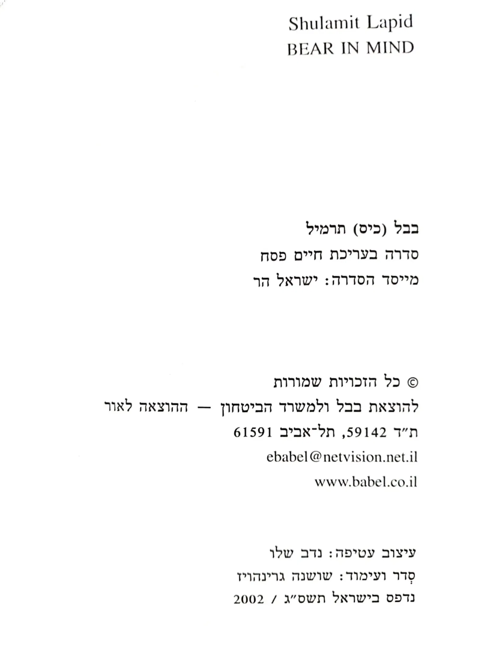 חיבוק דב מאת שולמית לפיד הוא רומן סאטירי המתרחש בביצה הספרותית של תל אביב. העלילה מתמקדת במשורר עלום שם ובמעריצה עיקשת, ובוחנת את הדינמיקות והיחסים בעולם הספרותי המקומי. לפיד, הידועה בכתיבתה השנונה, מציגה כאן יצירה מבריקה המשלבת ביקורת חברתית עם הומור דק.