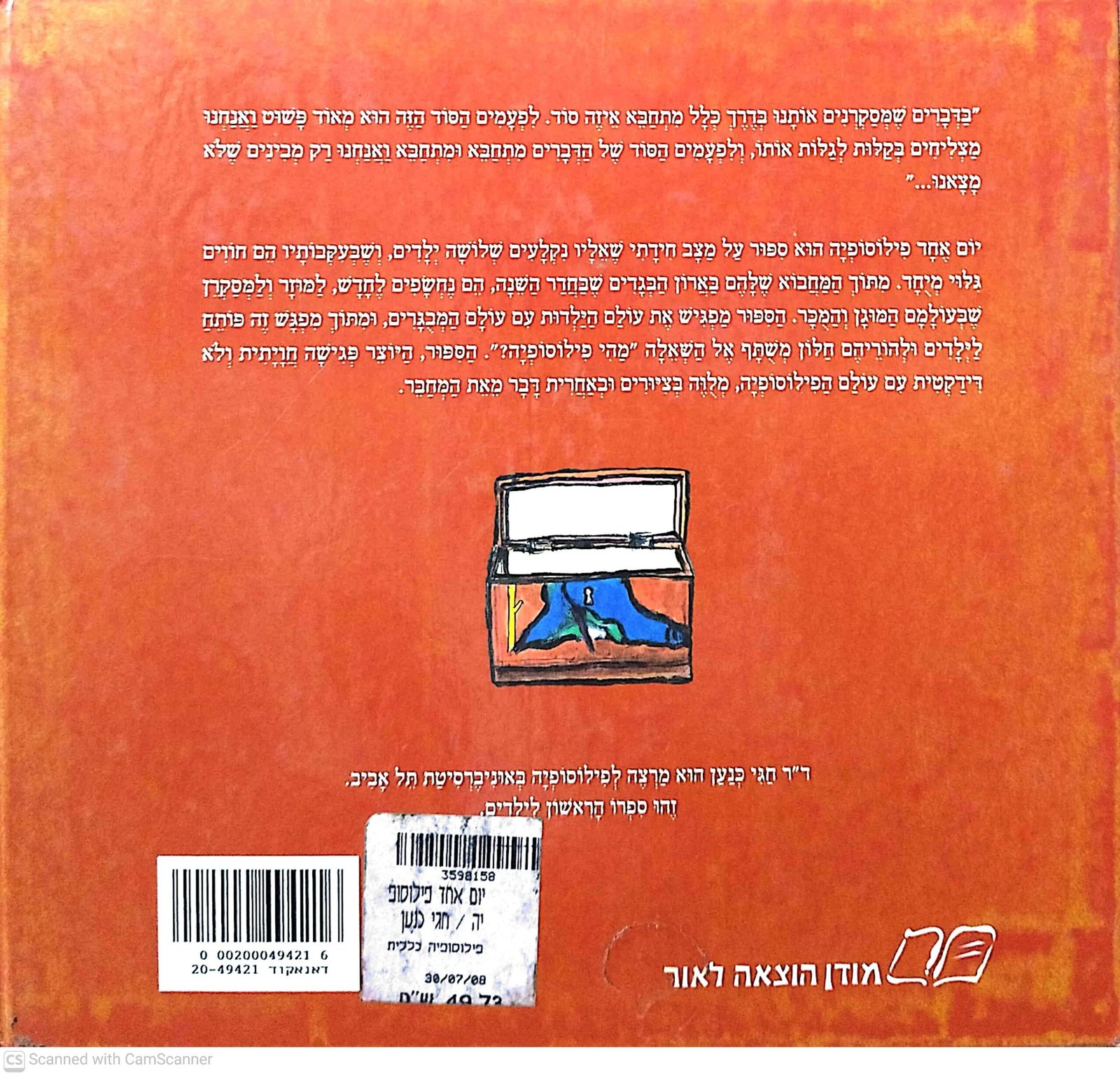 יום אחד פילוסופיה מאת חגי כנען הוא ספר מרתק המשלב הרפתקה ודמיון עם מחשבה פילוסופית מעמיקה. שלושה ילדים יוצאים למסע יוצא דופן, שבו הם מגלים עולמות נסתרים ולומדים לשאול שאלות על משמעות החיים, חופש הבחירה והאמת. דרך סיפור פשוט וקל לקריאה, הספר מעודד צעירים ומבוגרים כאחד לחשוב, לתהות ולבחון את הדרך שבה הם מבינים את העולם. זהו ספר מיוחד המשלב בין סיפור עלילה מרתק לבין מבט פילוסופי עדין ונגיש.