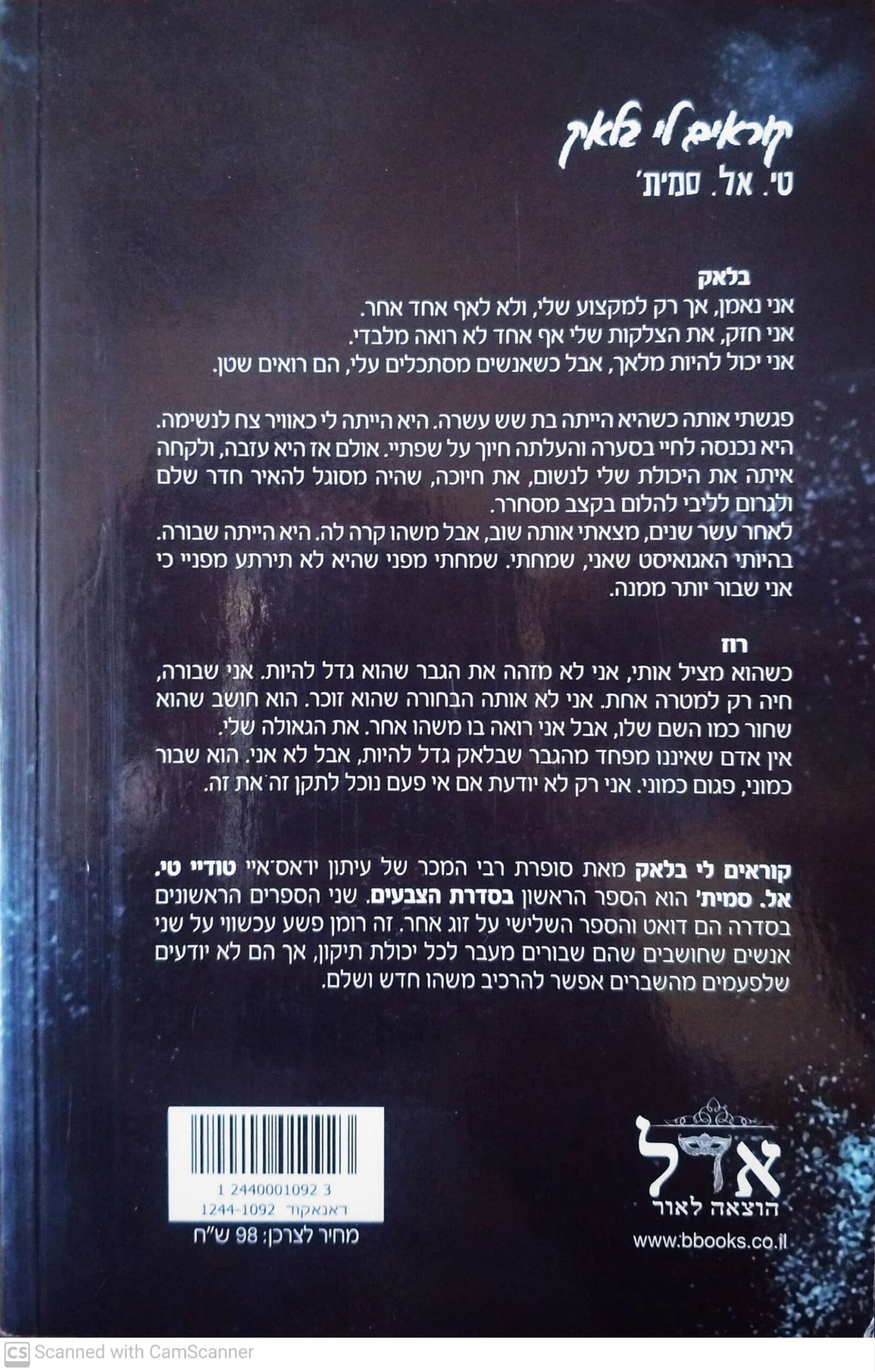 קוראים לי בלאק מאת טי. אל. סמית' הוא רומן סוער וטעון רגשות, הפותח את סדרת "הצבעים". הסיפור מסופר מנקודת מבטו של גבר מסתורי המכונה בלאק, הנושא עימו עבר אפל ופצעים שלא החלימו. מפגש מקרי עם אישה חופשייה ובלתי צפויה מערער את עולמו הסגור וגורם לו להתמודד עם שאלות של אהבה, אשמה וגאולה. זהו סיפור על תשוקה שנולדת מתוך כאב, על מאבק פנימי בין שליטה לרוך, ועל האפשרות למצוא אור גם בלב החושך.