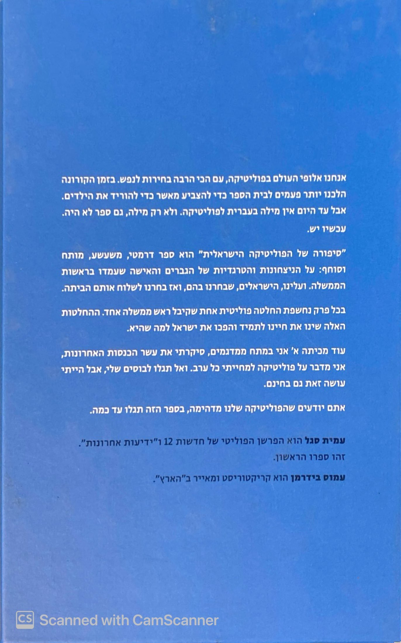 סיפורה של הפוליטיקה הישראלית מאת עמית סגל מציג סקירה מרתקת של ההיסטוריה הפוליטית של מדינת ישראל דרך עיניהם של שלושה עשר ראשי הממשלות שכיהנו בה, מבן־גוריון ועד ימינו. כל פרק מתמקד ברגע מכריע אחד בקריירה של כל מנהיג — החלטה ששינתה את פני הפוליטיקה, החברה והמדינה. הספר משלב תובנות היסטוריות עם פרשנות עיתונאית רעננה ואיורים ייחודיים, ומציע מבט מעמיק על הדינמיקה, השינויים והדרמות שעיצבו את ישראל מאז הקמתה.