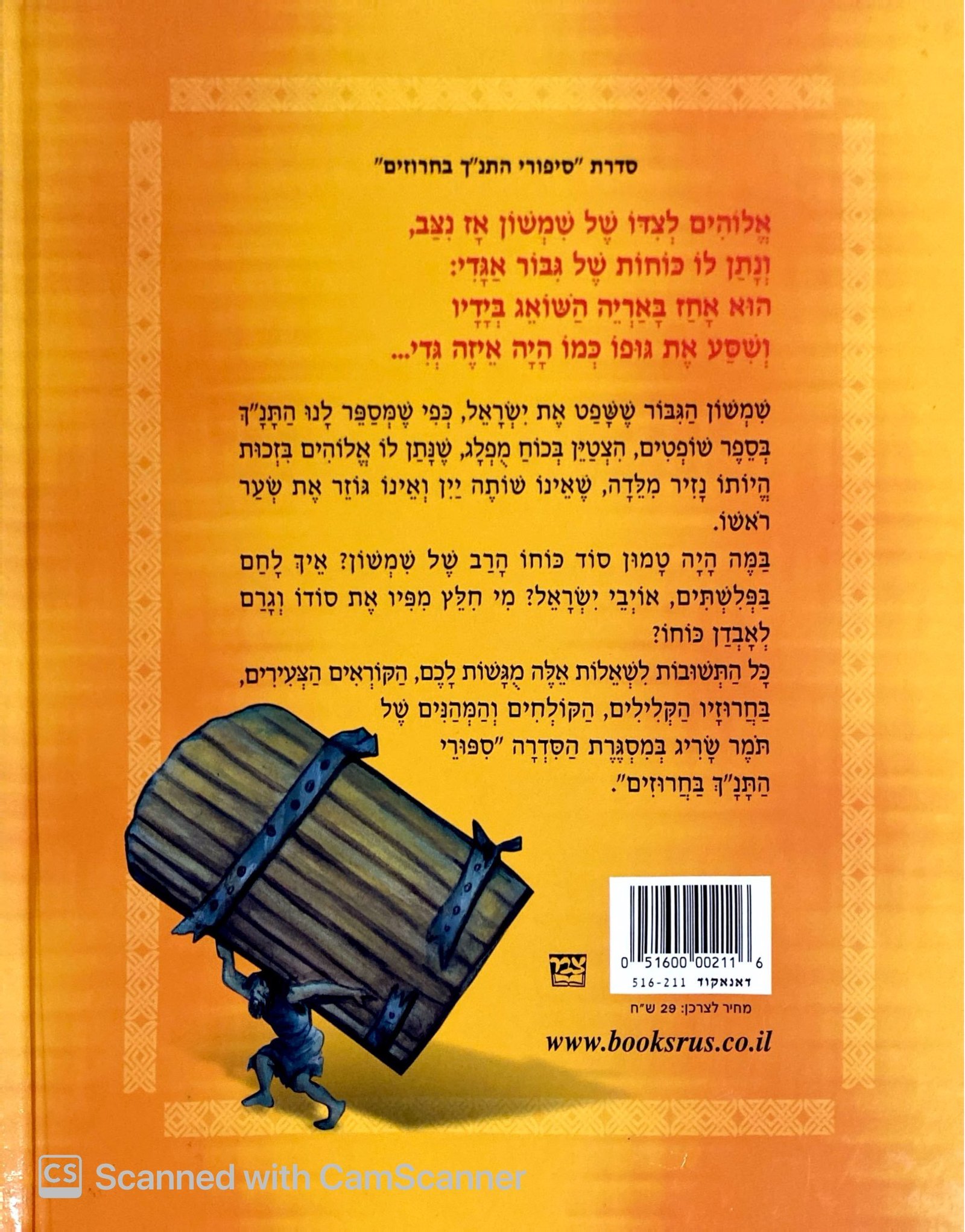 הספר "סיפורי התנ״ך בחרוזים: שמשון הגיבור" מאת תומר שריג מגיש לילדים את סיפורו של שמשון בצורה קלילה ומקצבית, בחרוזים שוטפים וברורים. דרך שפה חכמה והומור עדין, מציג הספר את קורותיו של הגיבור התנ״כי – מלידתו ועד סופו – באופן שמנגיש את סיפור התנ״ך הקלאסי לדור צעיר. זהו שילוב מהנה של למידה וקריאה, המעורר סקרנות כלפי סיפורי המקרא ומעודד אהבה לשפה העברית.