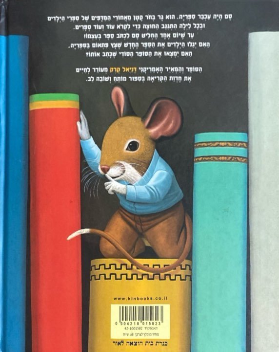 הספר "עכבר הספרייה" מאת דניאל קרק (Daniel Kirk) מספר את סיפורו של סם, עכבר ביישן המתגורר בחור קטן מאחורי מדפי ספרי הילדים בספרייה. בכל לילה, סם יוצא ממחבואו כדי לקרוא ספרים, עד שיום אחד הוא מחליט לכתוב ספר משלו. הילדים המבקרים בספרייה מגלים את הספרים הקטנים שסם משאיר, ומתפעלים מהם. הספר מעודד את הקוראים הצעירים לגלות את חדוות היצירה והכתיבה, ומדגיש את הרעיון שכל אחד יכול להיות סופר.