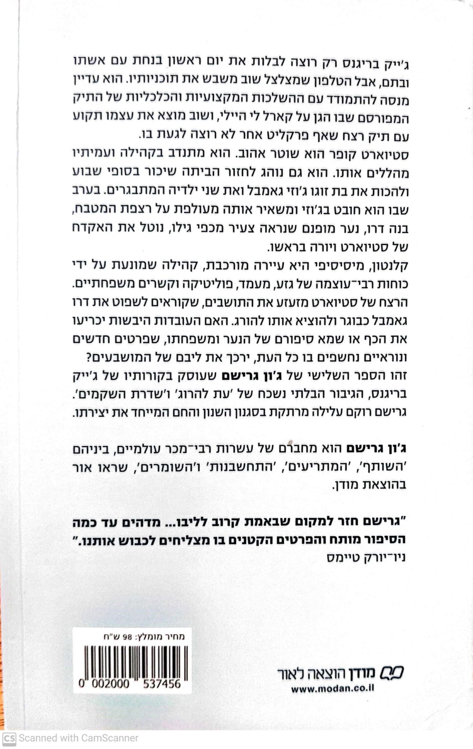 עת לחמול מאת ג’ון גרישם הוא רומן משפטי סוחף המעמיק בשאלות של צדק, מוסר וחמלה. ג’ייק בריגנס, עורך דין בעיירה הקטנה קלנטון שבמיסיסיפי, נקרא להגן על דרו קופר – נער בן שש־עשרה שירה למוות באביו, שוטר מקומי אהוד. מאחורי המעשה מתגלה סיפור של אלימות ביתית, פחד ושבר משפחתי, אך הקהילה כולה דורשת ענישה נוקשה. ככל שהמשפט מתקדם, בריגנס מוצא את עצמו במאבק בין החוק היבש לבין מצפונו, כשהוא נדרש להתמודד עם לחצים ציבוריים, פוליטיים ואישיים. גרישם טווה עלילה דרמטית ומורכבת, הבוחנת את גבולות הצדק ואת המחיר האנושי של החלטות מוסריות בעולם שבו האמת אינה תמיד חד-משמעית.