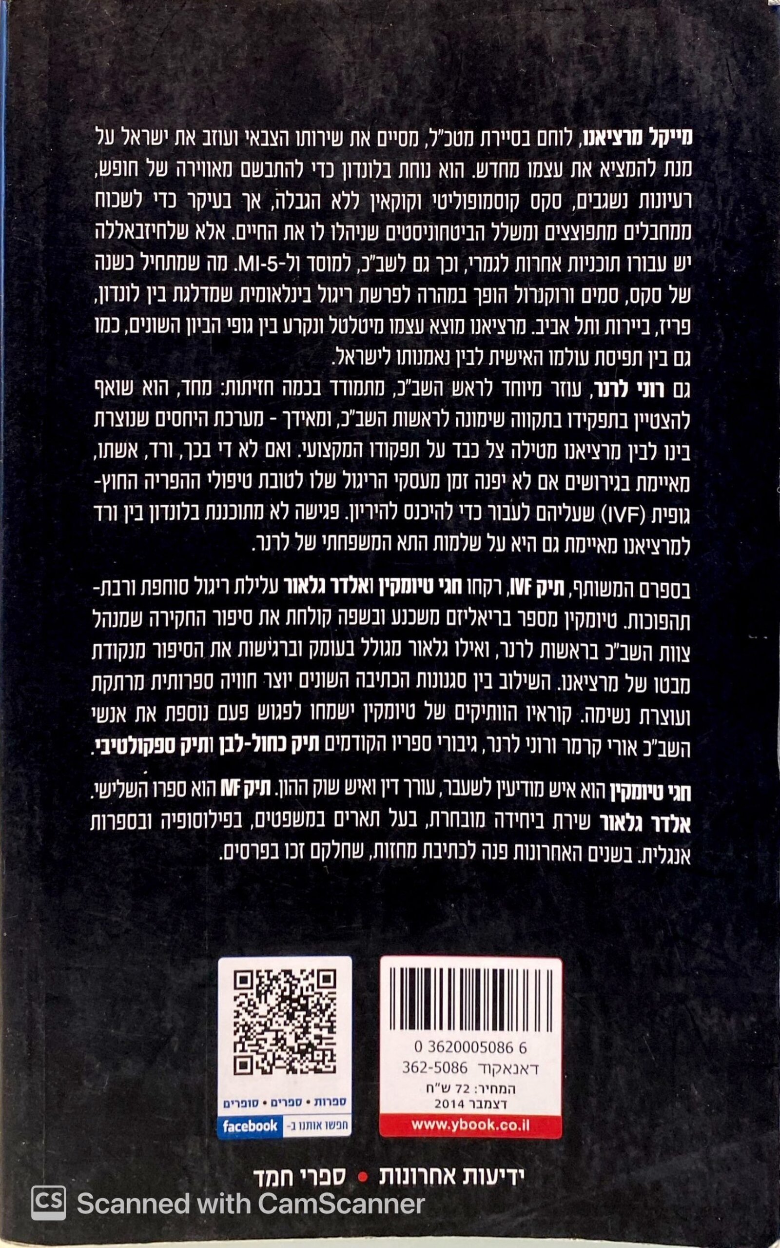 תיק IVF מאת חגי טיומקין ואלדר גלאור הוא מותחן ריגול סוחף המשלב עלילה סבוכה, קונפליקטים מוסריים ודרמה אישית בעוצמה נדירה. מייקל מרציאנו, לוחם לשעבר בסיירת מטכ"ל, מנסה לפתוח דף חדש בלונדון, אך מוצא את עצמו במהרה מעורב בפרשת ריגול חובקת עולם. במקביל, רוני לרנר, עוזרו של ראש השב"כ, מסתבך בפרשה נפיצה הקשורה לטיפולי פוריות – תיק IVF – שמאיים לערער את עולמו האישי והמקצועי. בין טרור בינלאומי, יחסי כוחות בין ארגוני מודיעין ישראליים וזרים, ואמת שאינה חד משמעית, מתפתחת עלילה מרתקת המעלה שאלות על נאמנות, אתיקה ובחירה אישית.