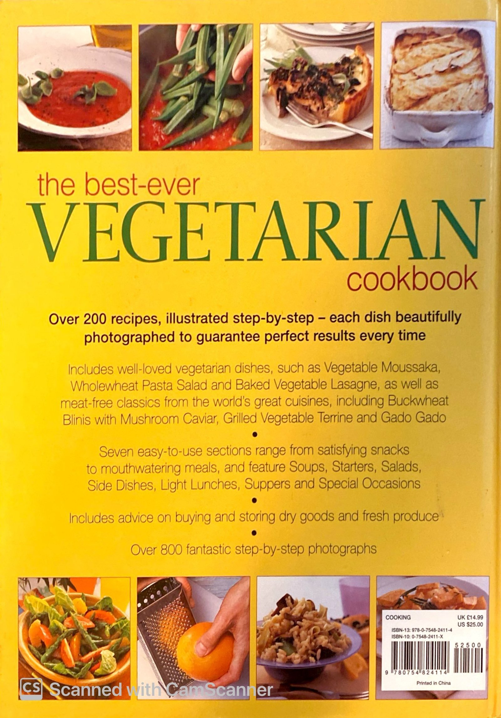 The Best-Ever Vegetarian Cookbook by Linda Fraser presents a wide-ranging collection of vegetarian dishes from around the world, designed both for everyday meals and special occasions. The book includes more than 200 recipes, each with step-by-step instructions and accompanied by photographs to guide the cooking process. From fresh salads and hearty soups to main courses, side dishes, and desserts, it offers practical ideas for balanced, flavorful vegetarian dining. Clear explanations and cooking tips make it accessible to beginners, while the variety of international flavors provides inspiration even for experienced cooks.